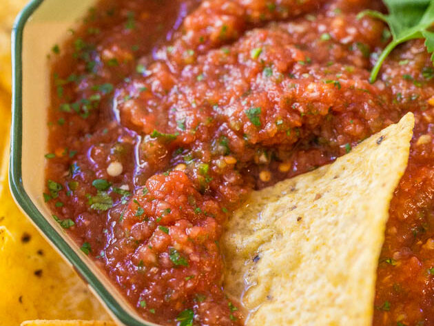 Si la salsa finale est trop liquide à votre goût, vous pouvez tapisser une passoire de deux ou trois feuilles de papier absorbant, transférez la salsa dans la passoire et laissez s’écouler une partie (mais pas la totalité !) de l’eau.