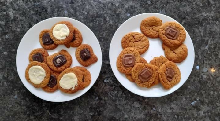 • je préfère ajouter du chocolat (noir, lait ou blanc) après la cuisson. En effet, la chaleur résiduelle suffira à ramollir les morceaux de chocolat que vous déposerez à la surface des cookies et vous éviterez de les « bruler » à la cuisson,